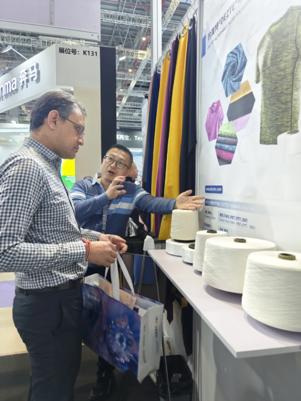Na štandu je tiho postavljena bogata matrica proizvoda—od visokoelastičnih sportskih vlakana do mekih i koži ugodnih kućnih vlakana i održivih proizvoda koji integriraju funkcionalnost i ekološke koncepte. Iza svake izložbe stoji dubok odgovor na segmentirane scenarije. Među njima, elastična PET/PTT kompozitna vlakna marke “Dizente” od bambusa kontrolirana su nedvojbeno kao “tehnička okosnica” kabine. Razbija tradicionalni pojedinačni izraz elastičnih vlakana i unosi ritmički osjećaj napetosti i opuštenosti u tkaninu s kontroliranom bambusovom strukturom.